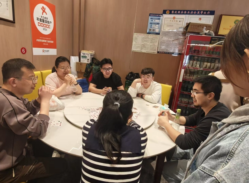 Στο χώρο του διαγωνισμού, όλοι σχημάτιζαν ομάδες ελεύθερα, ζευγαρώνονταν, κάθονταν γύρω από ένα τραπέζι, ανακάτευαν κάρτες, έπαιζαν χαρτιά, συνεργάζονταν και διαγωνίζονταν. Κάθε βήμα ήταν καλά μελετημένο και κάθε χαρτί που παίχτηκε είχε κρυφές στρατηγικές. Μερικές φορές επευφημούσαν για ένα καλό φύλλο, μερικές φορές ενθάρρυναν ο ένας τον άλλον για ένα λάθος και μερικές φορές συζητούσαν σοβαρά τις τακτικές για να κερδίσουν. Η ατμόσφαιρα στο σημείο ήταν χαλαρή και ζεστή. Χωρίς την ενασχόληση της δουλειάς και τον περιορισμό της πίεσης, όλοι ενίσχυσαν την κατανόηση και τη φιλία τους σε ενδιαφέροντα παιχνίδια, απελευθέρωσαν την πίεση στο γέλιο και επίσης συνειδητοποίησαν βαθιά το πραγματικό νόημα της ομάδας «ενότητα και συνεργασία, win-win και συνύπαρξη.